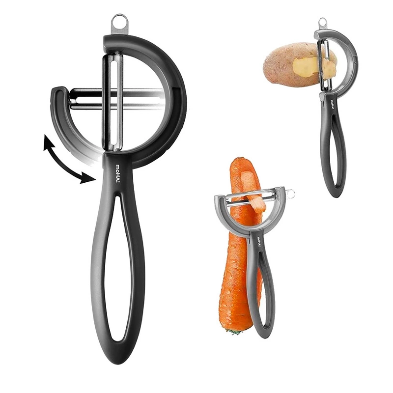 Obrotowe ostrze pozwala obierać warzywa w obu kierunkach, więc nadaje się również dla osób leworęcznych.