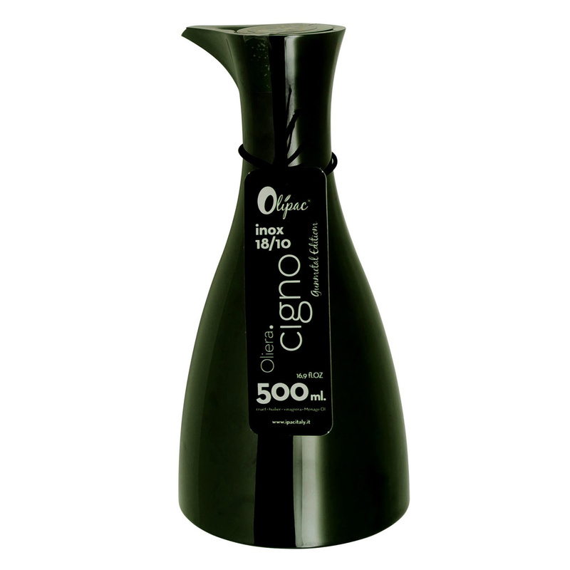 Butelka na oliwę Cigno ze stali nierdzewnej o pojemności 500ml w kolorze gunmetal, charakteryzuje się urzekającym wyglądem.