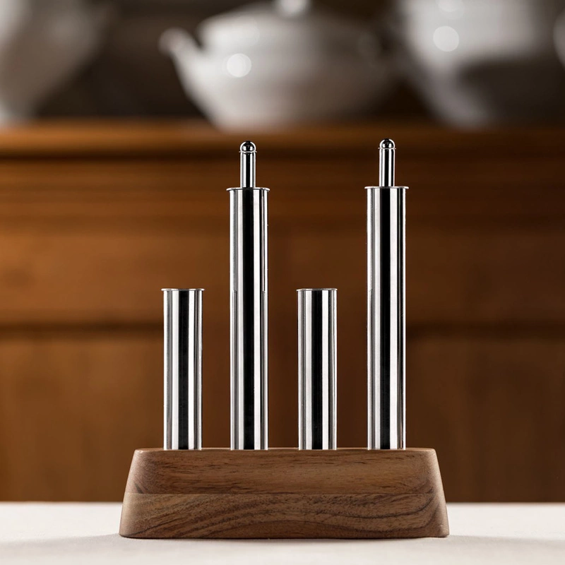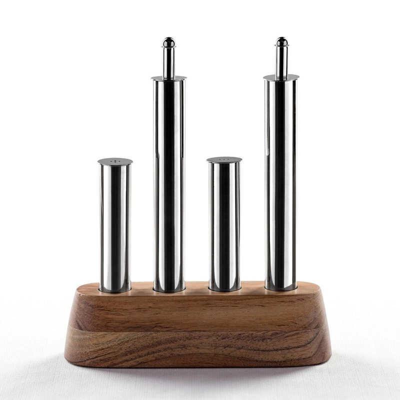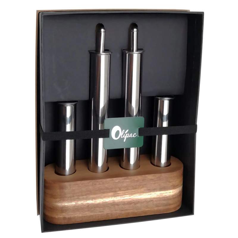 Olipac - Przyprawnik do octu, oliwy, soli i pieprzu z drewnianą podstawą FILARE w pudełku prezentowym