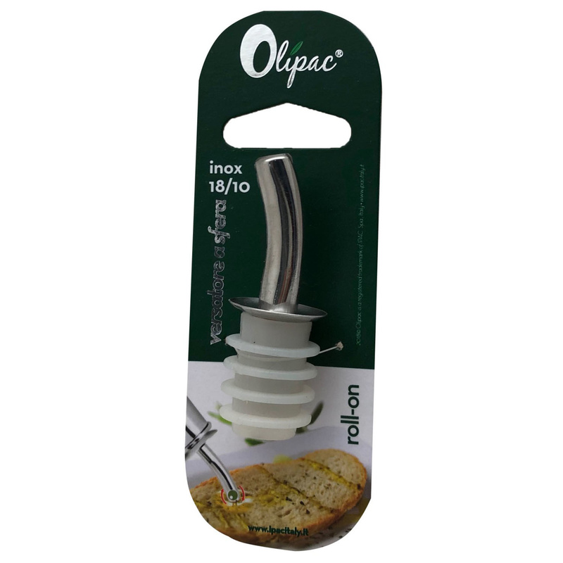 Nalewak ROLL-ON ze stali nierdzewnej przeznaczony do bezpośredniego smarowania jedzenia oliwą nie pozwalając na jej nadmierne rozlewanie.