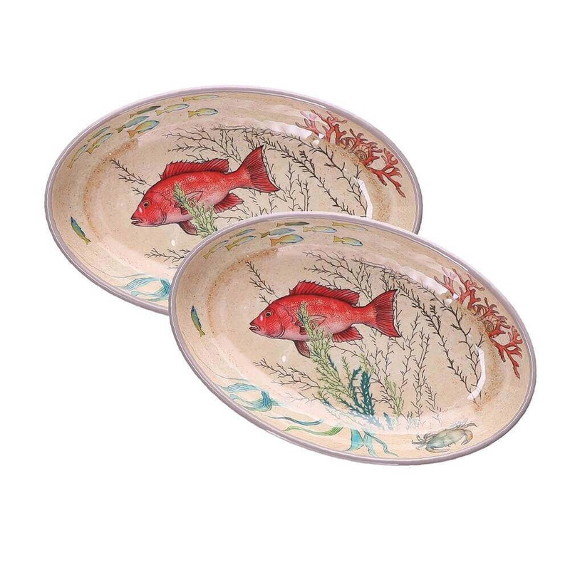 Rose&Tulipani - zestaw 2 półmisków owalnych z melaminy 24x15 cm Sea Life