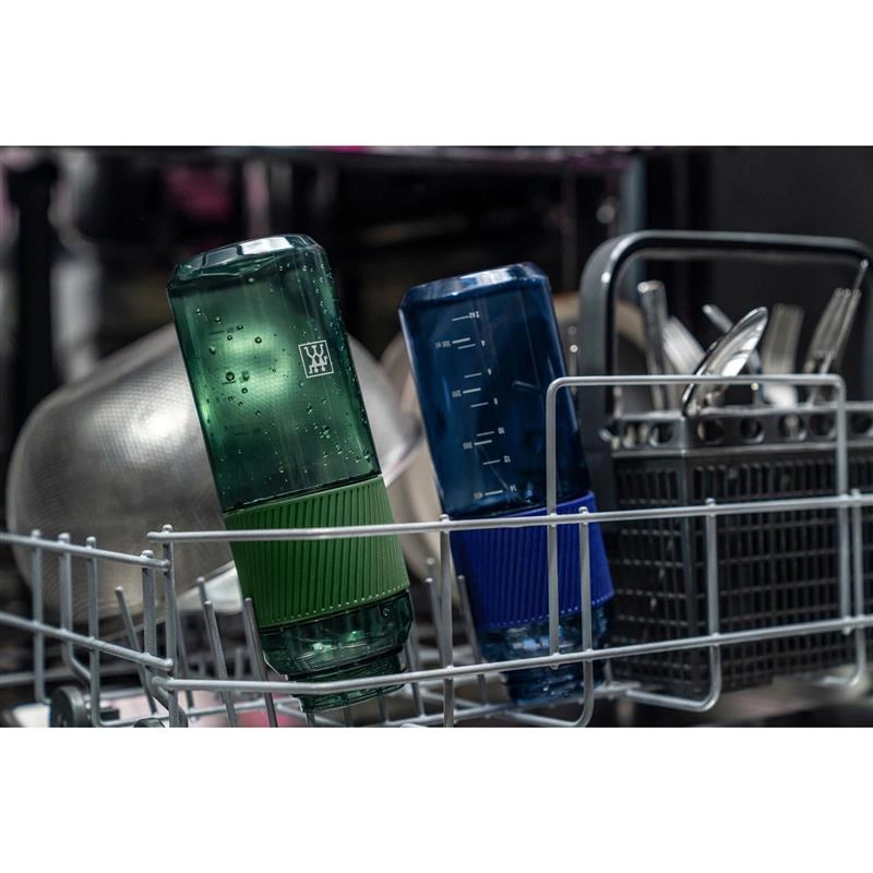 Bidon Zwilling zielony wykonany z tritanu 680 ml. Możesz łatwo napełnić aż do 680 ml wody, herbaty lub soków, a dzięki sitku owocowemu, nie musisz się przejmować pestkami czy miąższem.