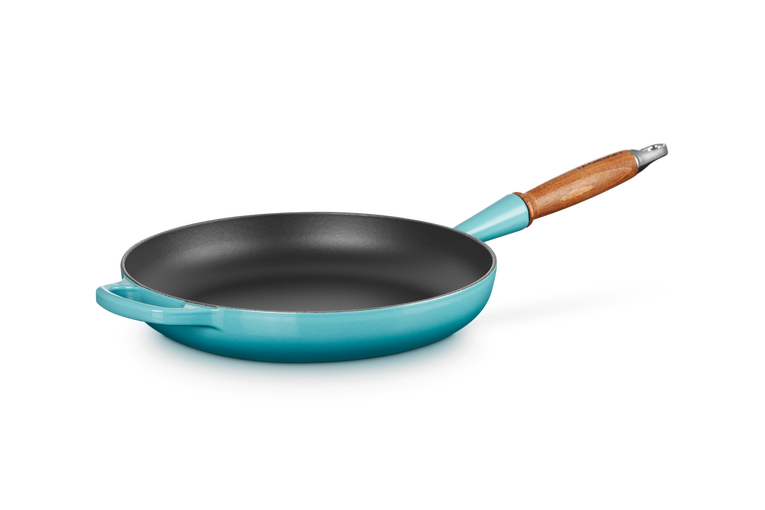 Żeliwna patelnia Le Creuset Signature karaibska z drewnianym uchwytem średnica 28 cm.