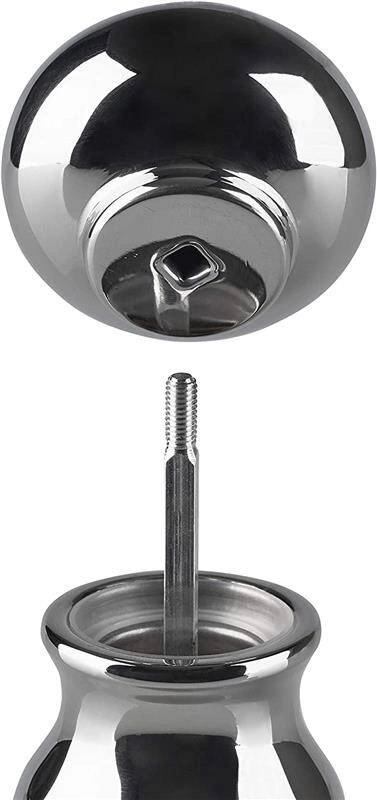 - przy uzupełnianiu młynka przyprawą, odkręć górną śrubę, wsyp przyprawę, nałóż górny element korpusu lekko nakręcając śrubę, a następnie odwróć młynek do góry dnem i lekko potrząśnij, tak aby przyprawa nie znajdowała się w mechanizmie i teraz dokręć śrubę