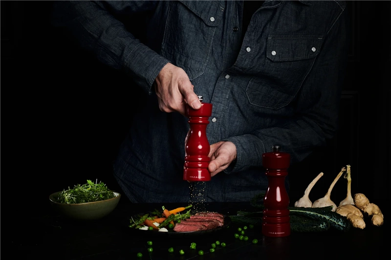 Młynek do przypraw London to wyjątkowe urządzenie, które łączy w sobie tradycję i nowoczesność. Wykonany z wysokiej jakości drewna bukowego, lakierowanego na czerwony połysk. Jego design został zainspirowany stylem Art Deco i brytyjską architekturą przemysłową, co nadaje mu wyjątkowy wygląd. Jest to stylowy dodatek zarówno do tradycyjnych, jak i nowoczesnych kuchni.
