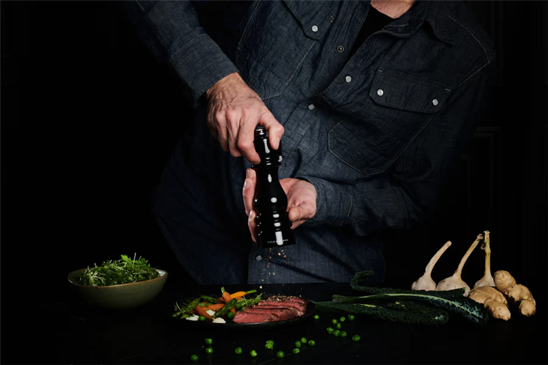 Młynek został przystosowany do mielenia czarnego pieprzu, jest wyposażony w mechanizm precision+ z utwardzonej stali węglowej, który jest bardziej wydajny i trwalszy od innych mechanizmów stalowych, co potwierdza dożywotnia gwarancja udzielana przez producenta na mechanizmy mielące.
