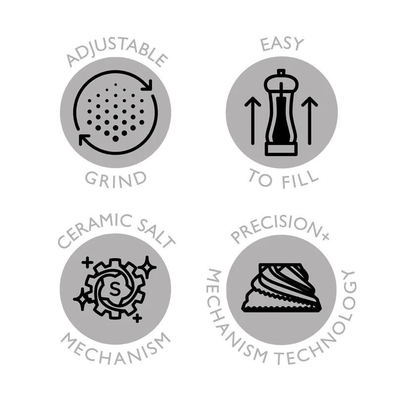 Młynek został wyposażony w ceramiczny mechanizm precision, który jest niezwykle wydajny i wytrzymały, co potwierdza dożywotnia gwarancja na mechanizm mielący udzielana przez producenta. Mechanizm ceramiczny odporny jest na korozję, więc idealnie nadaje się do mielenia soli, ziół i pieprzu kolorowego.