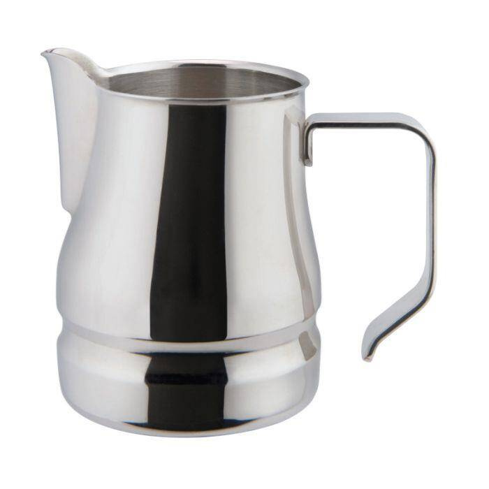 Stalowy dzbanek, z którym wykonanie "latte art" będzie łatwiejsze.