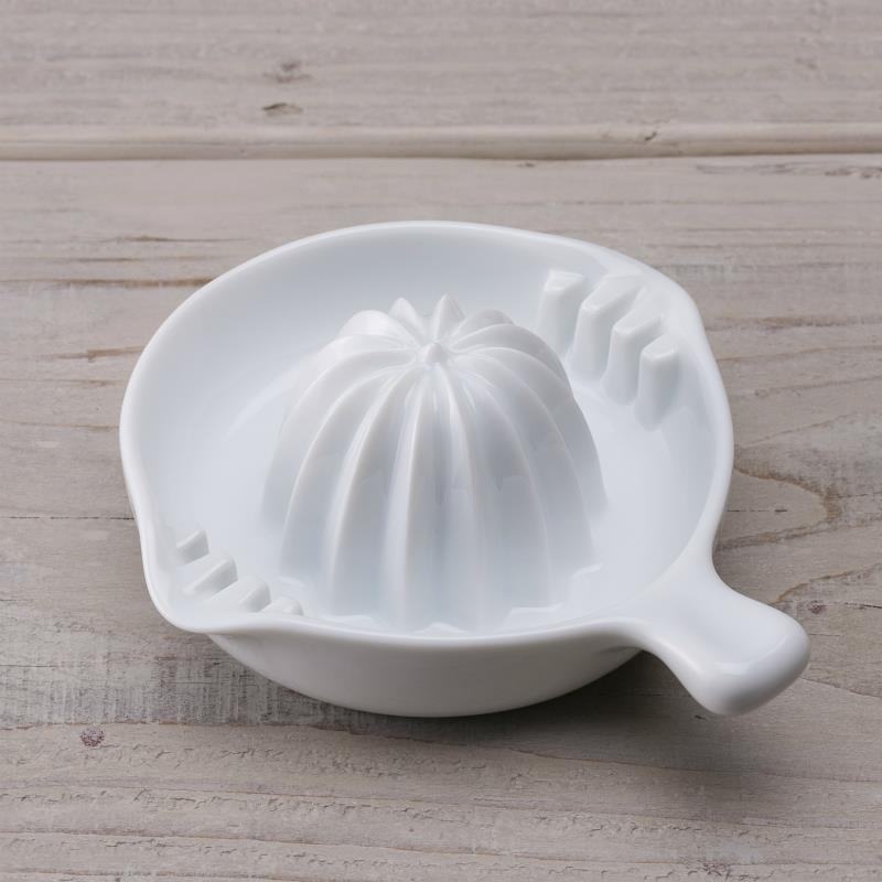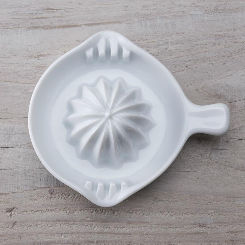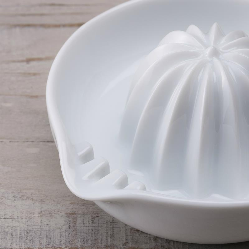 Wyciskacz do cytrusów wykonany jest z grubej porcelany. Po użyciu łatwo go umyć, nadaje się do zmywarki.