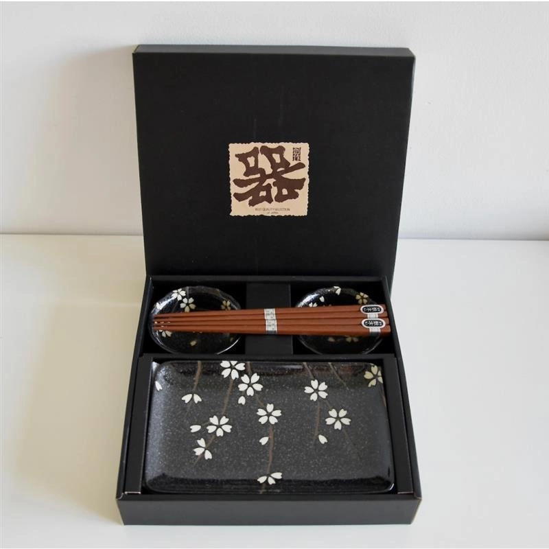 Made in Japan - Zestaw do sushi czarne, białe kwiaty- MADE IN JAPAN