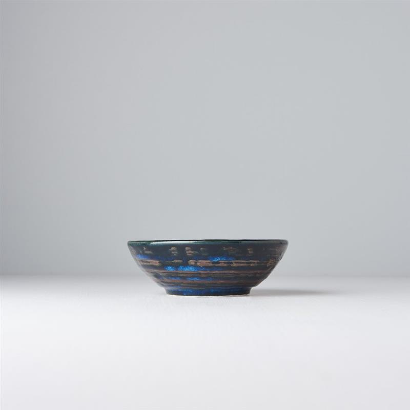 Miska do sosu, salsy oraz do przystawek. Ręcznie zdobiona miska utrzymana jest w kolorystyce niebiesko-czarnej, z spiralnym żłobieniem. Naczynie jest pokryte błyszczącą glazurą, która podkreśla kontrast kolorów i nadaje elegancji. Między poszczególnymi egzemplarzami misek mogą istnieć drobne różnice, co czyni każdą z nich unikalną i niepowtarzalną.