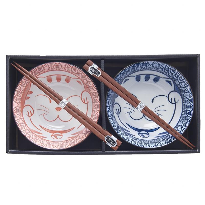 Made in Japan - Zestaw 2 miseczek Maneki Cat Red&Blue