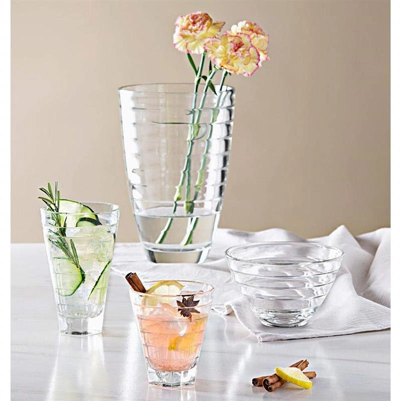 Wazon do kwiatów o wysokości 24 cm z poziomym wklęsłym szlifem na wewnętrznej powierzchni szkła to wyjątkowy i elegancki element dekoracyjny, który łączy w sobie elegancję i funkcjonalność. Jego unikalny wzór i precyzyjne wykonanie sprawiają, że wyróżnia się spośród innych wazonów, dodając wnętrzu wyjątkowy akcent i tworząc piękną oprawę dla prezentowanych kwiatów.