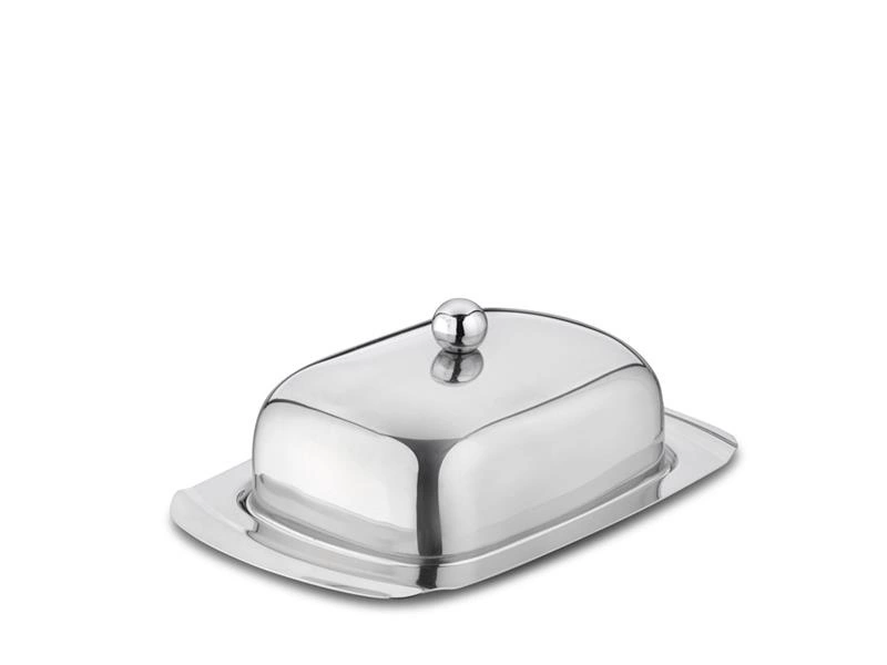 Weis - Maselnica ze stali nierdzewnej na kostkę 250 g Weis - Maselnica ze stali nierdzewnej na kostkę 250 g Klasyczna maselnica do eleganckiego przechowywania i podawania dużej kostki masła. Prosty, ponadczasowy design. Maselnica posiada pokrywę i podstawę wykonaną z polerowanej stali nierdzewnej. Maselnica ma wymiary 18,5 cm x 12,4 cm oraz wysokość 7 cm.