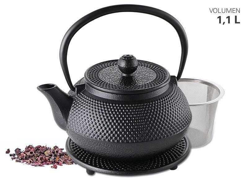W zestawie z dzbankiem znajduje się żeliwna podstawka z antypoślizgową podstawą.
