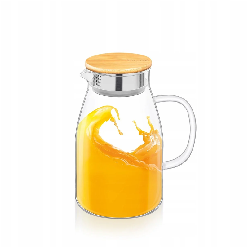 Wilmax - Dzbanek szklany do napojów 1,9 l Slim pokrywa bambusowa