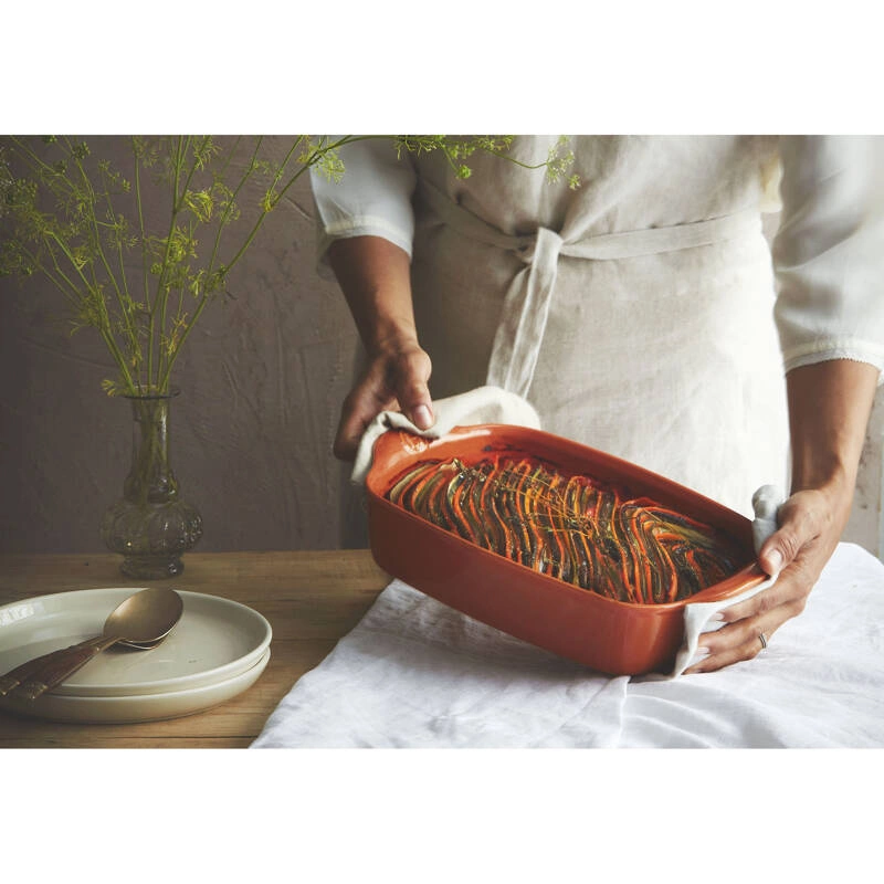 W tym małym, ale pojemnym naczyniu można przygotować i podać wszystkie rodzaje wypieków: zapiekanki, tians . Wykonane z ceramiki HR® (High Resistance), równomiernie rozprowadza ciepło podczas całego procesu pieczenia, a po podaniu na stół utrzymuje temperaturę potrawy przez długi czas. Odporny i wytrzymały, można go używać w piekarniku, pod grillem lub do podgrzewania czy rozmrażania w kuchence mikrofalowej. Niewielki rozmiar i elegancki kształt sprawiają, że to naczynie od Emile Henry jest doskonałym wyborem na przygotowanie posiłku dla 1lub 2 osób.