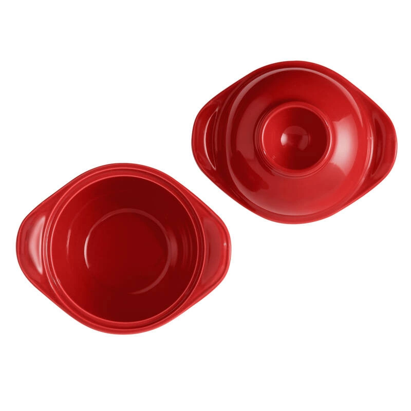 Miska z pokrywką do zapiekania i serwowania jajek 0,3l - czerwony Nowość 2021 od Emile Henry, wielofunkcyjna forma do pieczenia z pokrywką, która idealnie się sprawdzi jako podstawka do serwowania jajek. Miskę ceramiczną możesz wykorzystać do płatków śniadaniowych, owsianki, dań na słodko, a także do zup, zapiekanych warzyw, chilli con carne lub czegokolwiek na co akurat masz ochotę. Zimne czy gorące, masz ochotę na danie z pyszną złotą skórką? Nasze naczynia wykonane są z naturalnego materiału, który zapewnia zdrowe jedzenie. Wykonany z wytrzymałej, dwustronnie szkliwionej ceramiki High Resistance® idealnie się nadaje do pieczenia, podgrzania w mikrofali czy przechowania potrawy w lodówce. Dla Twojej wygody możesz łatwo umyć każdą część w zmywarce. Produkt jest nie tylko bardzo odporny na ścieranie, ale również doskonale znosi szoki termiczne. Można go włożyć do piekarnika z zamrażarki, odgrzać w kuchence mikrofalowej lub na płycie i przygotować obiad. Główne zalety: • wielofunkcyjność • praktyczność - serwowanie z piekarnika prosto na stół • łatwe przechowywanie • tylko naturalne materiały – ceramika szkliwiona • łatwa w czyszczeniu - gładka, nieporowata glazura, • można myć w zmywarce • nadaje się do kuchenek mikrofalowych i zwykłych piekarników • doskonała odporność na szoki termiczne (- 20 +270 ° C)