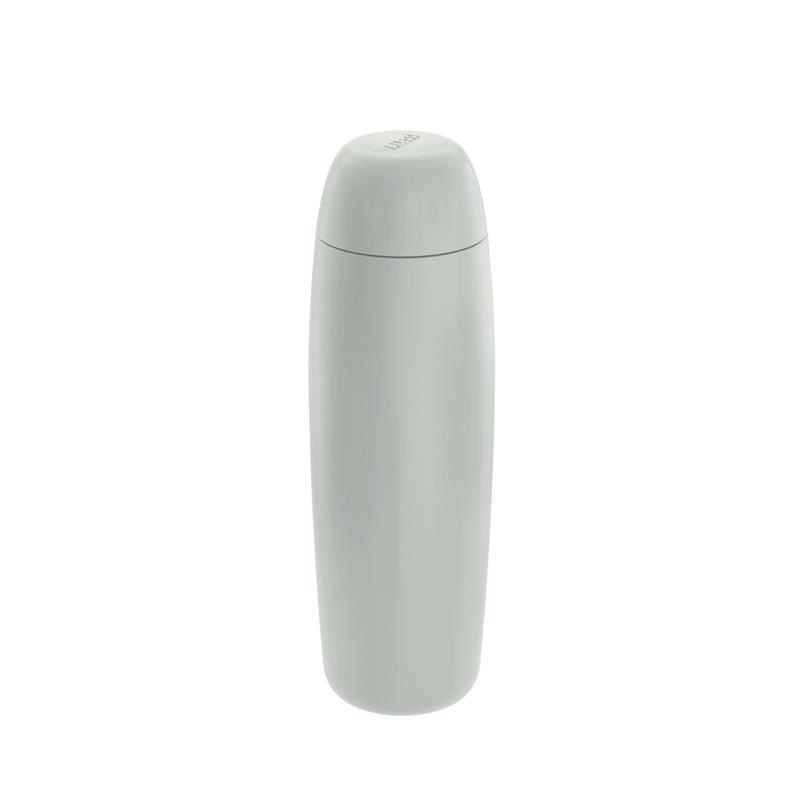 Butelka termoizolowana z podwójnymi ściankami, wykonana ze stali nierdzewnej 18/10 oraz szarej termoplastycznej żywicy. Butelka termiczna składa się z pojemnika i zakrętki. Pojemnik posiada podwójną ścianę wykonaną ze stali, bez powietrza wewnątrz czyli z efektem próżni co zapewnia doskonałą izolację zawartego w nim napoju. Nakrętka wykonana jest w 100% z nadającej się do recyklingu żywicy termoplastycznej PBT, która jest bezpieczna dla żywności, całkowicie wolna od bisfenolu A (BPA). - Uszczelka i gwint zapewniają hermetyczne zamknięcie butelki dzięki czemu napój na długo zachowuje smak i aromat. - Stalowy pojemnik jest matowy, zaś plastikowa nakrętka- błyszcząca, na wzór nowych pojemników na lunch Food a Porter. - Butelka termiczna ma