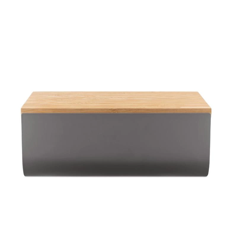 Chlebak ze stali pokrytej żywicą epoksydową z deską do krojenia z drewna bambusowego, ciemnoszary. Pojemnik na pieczywo składa się ze stalowego pojemnika oraz bambusowej deski do krojenia, która służy również jako pokrywka. - Boczny otwór umożliwia ograniczony przepływ wilgoci, która jest niezbędna do utrzymania zapachu pieczywa. - Chleb najlepiej przechowywać w papierowej lub materiałowej torbie przed umieszczeniem go w pudełku na chleb. - Antypoślizgowe silikonowe nóżki umieszczone na dnie pojemnika zapewniają jego stabilność. - Wielofunkcyjny, praktyczny i łatwy do przenoszenia dzięki konstrukcji górnej części z dwoma wygodnymi uchwytami - Rowki na górze deski do krojenia ułatwiają zbieranie i czyszczenie okruchów. - Kształt dolnej części deski do krojenia został zaprojektowany tak, aby idealnie pasował do pojemnika, dzięki czemu jest stabilny i bezpieczny, nawet gdy deska używana jest jako taca. Zaleca się czyszczenie pojemnika i deski do krojenia wilgotną ściereczką, a następnie dokładne wysuszenie.