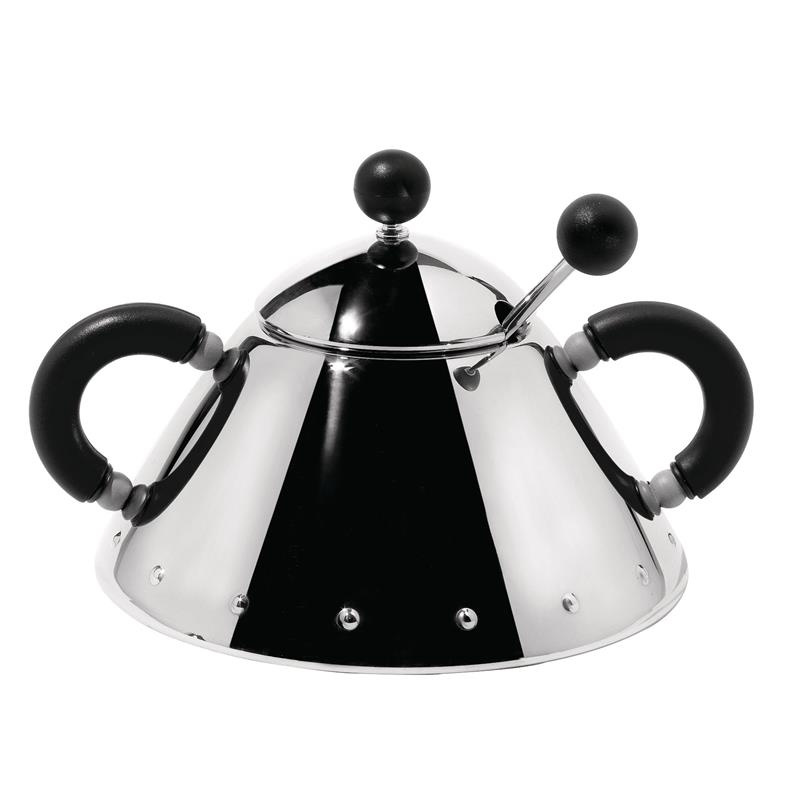 Alessi - cukiernica z łyżeczką, czarne uchwyty Alessi - cukiernica z łyżeczką, czarne uchwyty Cechy: