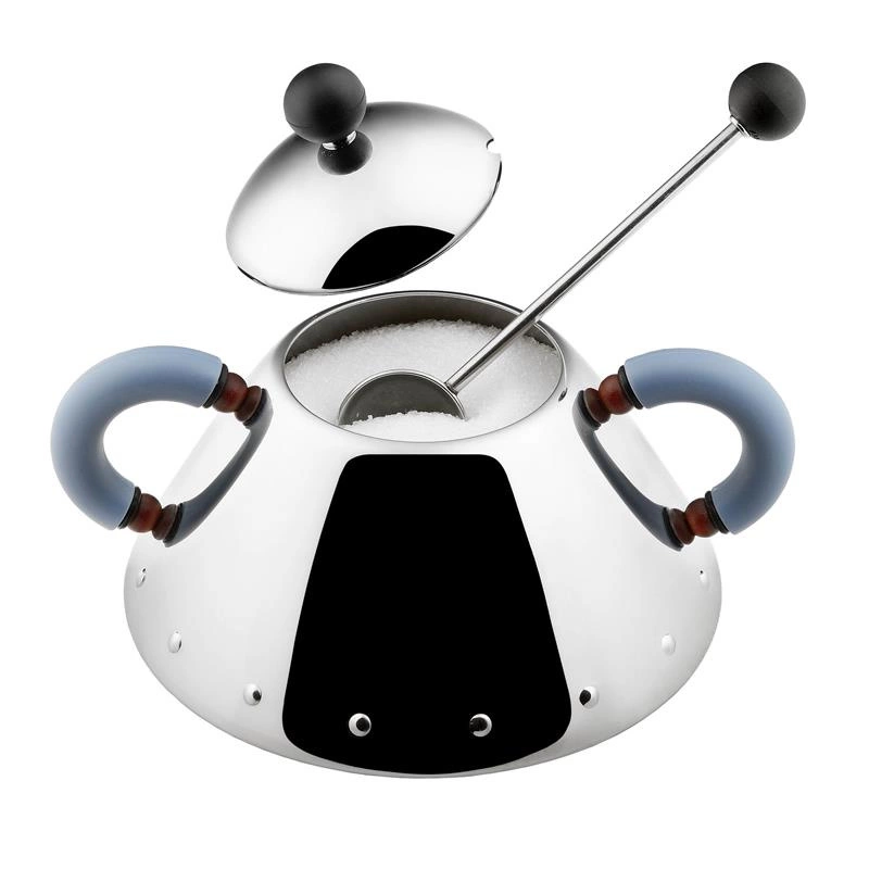 Alessi - cukiernica z łyżeczką, niebieskie uchwyty Alessi - cukiernica z łyżeczką, niebieskie uchwyty Cechy: