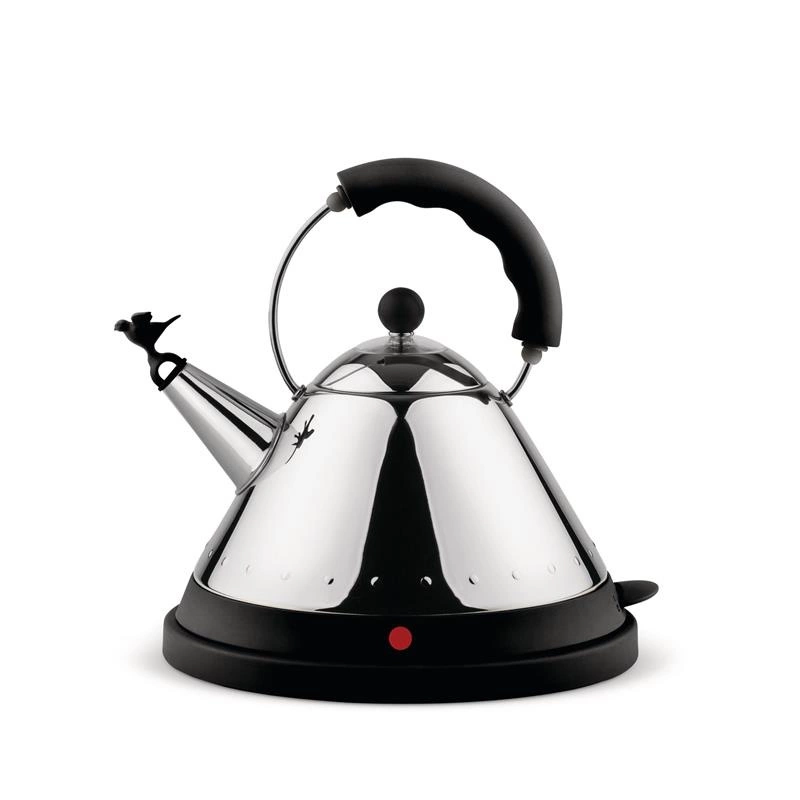 Alessi - czajnik elektryczny, bezprzewodowy, czarny uchwyt, ptaszek