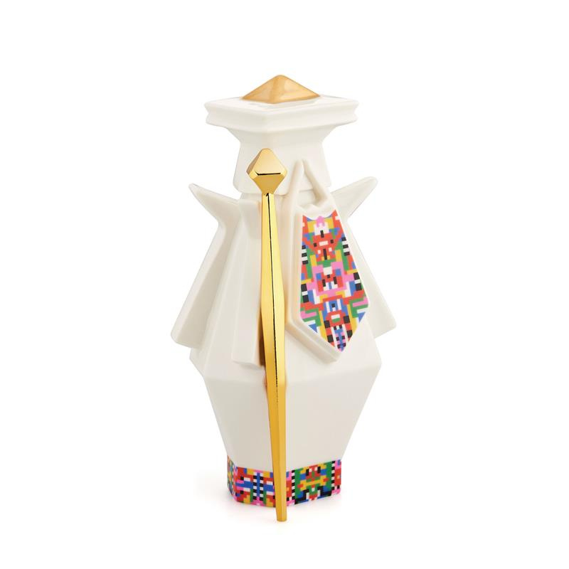 Kolekcja figurek HOLYHEDRICS stworzona przez Elenę Salmistraro, która to przerabia najbardziej klasyczną scenę Narodzenia Pańskiego w wysoce artystyczny sposób. Kompozycja łączy rozległe odniesienia kulturowe dla podkreślenia globalnego charakteru obchodów tego święta. Elementy szopki są pokryte ręcznie naklejanymi kalkami oraz detalami z 24-karatowego złota. W skład kolekcji wchodzą figurki: Maryja, Jezus, Józef, Wół i Osioł. Figurka z porcelany. Ręcznie zdobiona- Józef.