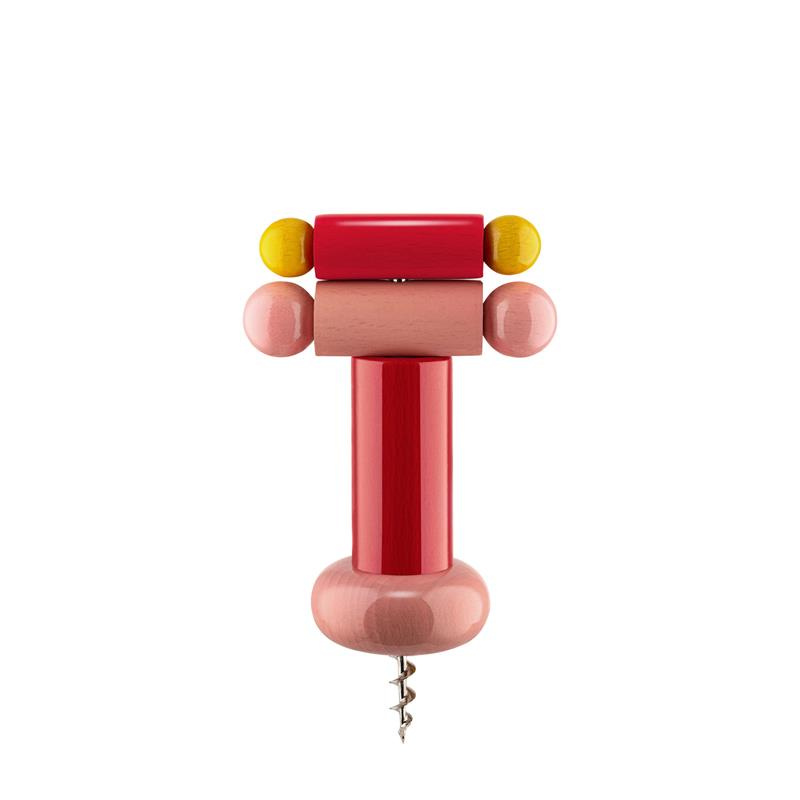 Alessi - Korkociąg- czerwony Alessi - Korkociąg- czerwony Korkociąg z drewna bukowego w kolorach- czerwonym, różowym i żółtym.