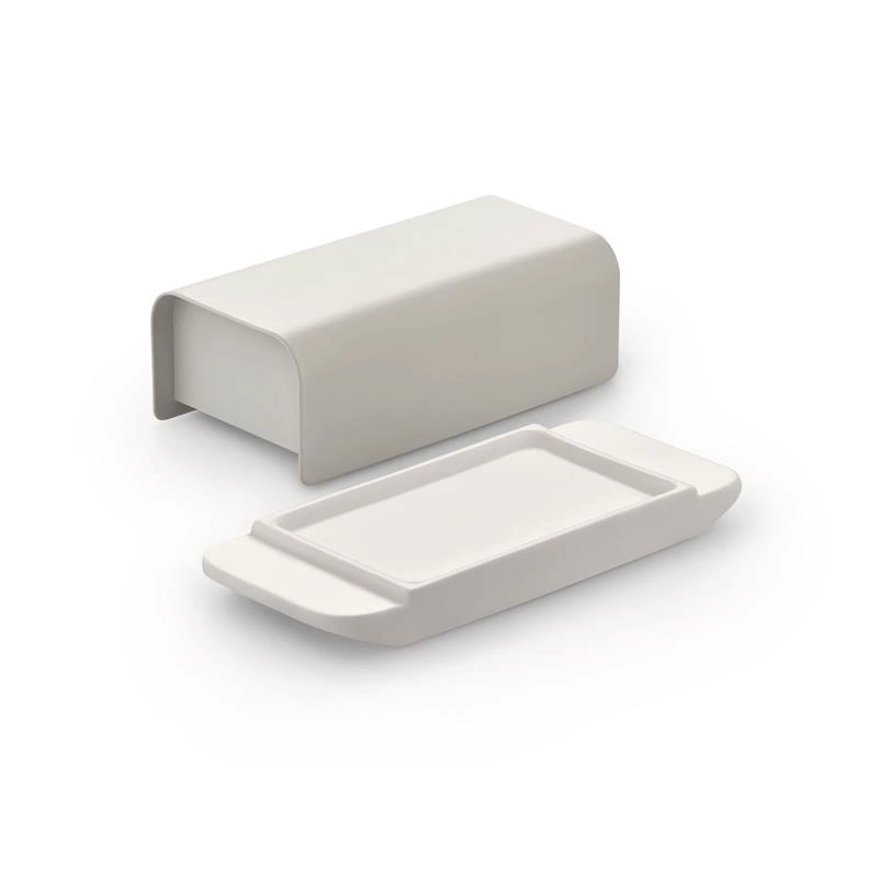 Porcelanowa maselniczka z pokrywką ze stali nierdzewnej 18/10, barwionej żywicą epoksydową, szara.