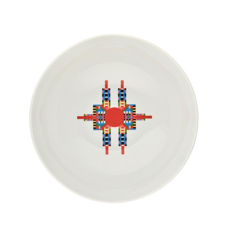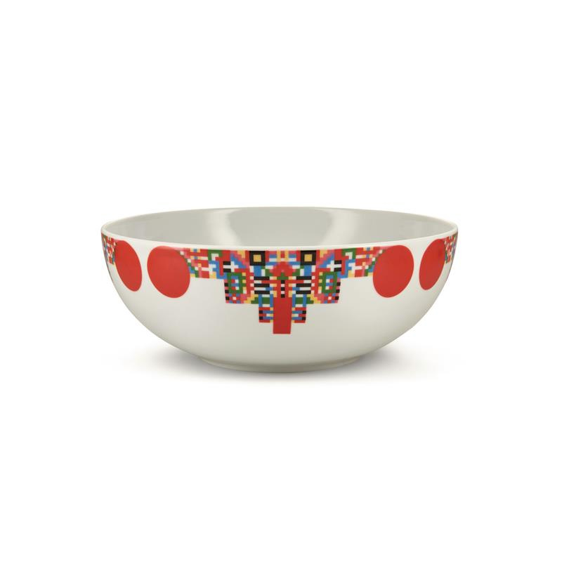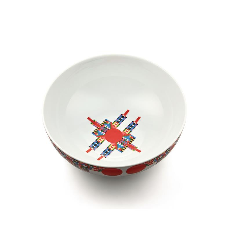 Naczynie porcelanowe wchodzące w skład kolekcji HOLYHEDRICS zaprojektowanej przez Elenę Salmistraro. Jest to interpretacja tradycyjnej świątecznej misy na słodycze lub bakalie. Wielobarwna kompozycja ułożona w górnej części miski nawiązuje do siły, która pochodzi z przeciwieństw oraz magii czyli syntezy. Naczynie jest ręcznie ozdobione naklejanymi kalkomaniami. Można myć w zmywarce, nie używać ściernych ściereczek ani detergentów, które mogłyby uszkodzić powierzchnię.