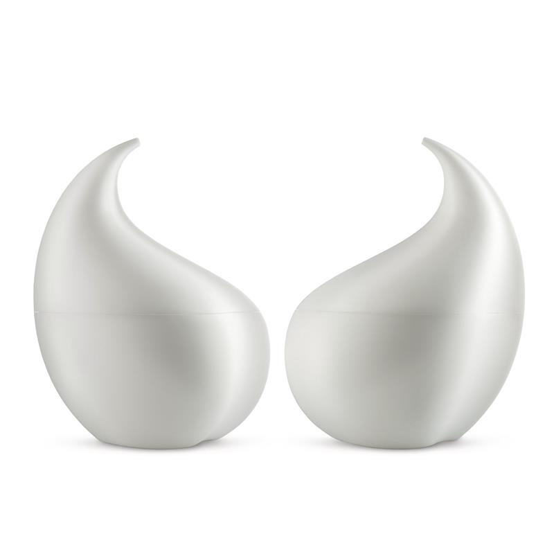 Zestaw do przechowywania i serwowania mozzarelli: pojemnik zachowywujący świeżość z żywicy termoplastycznej-biały oraz perforowana chochla ze stali nierdzewnej 18/10.