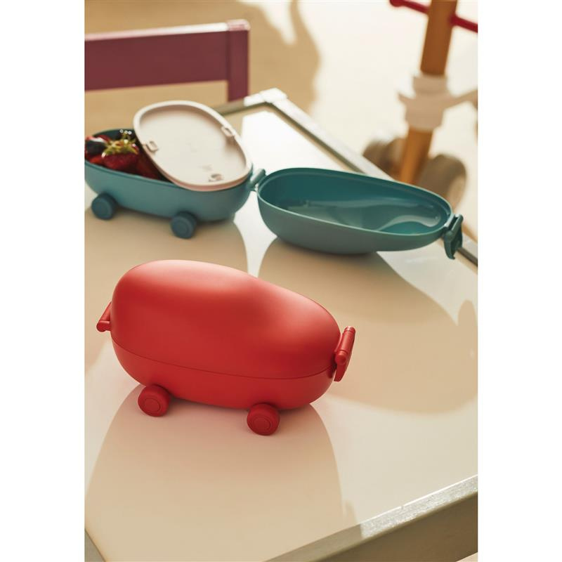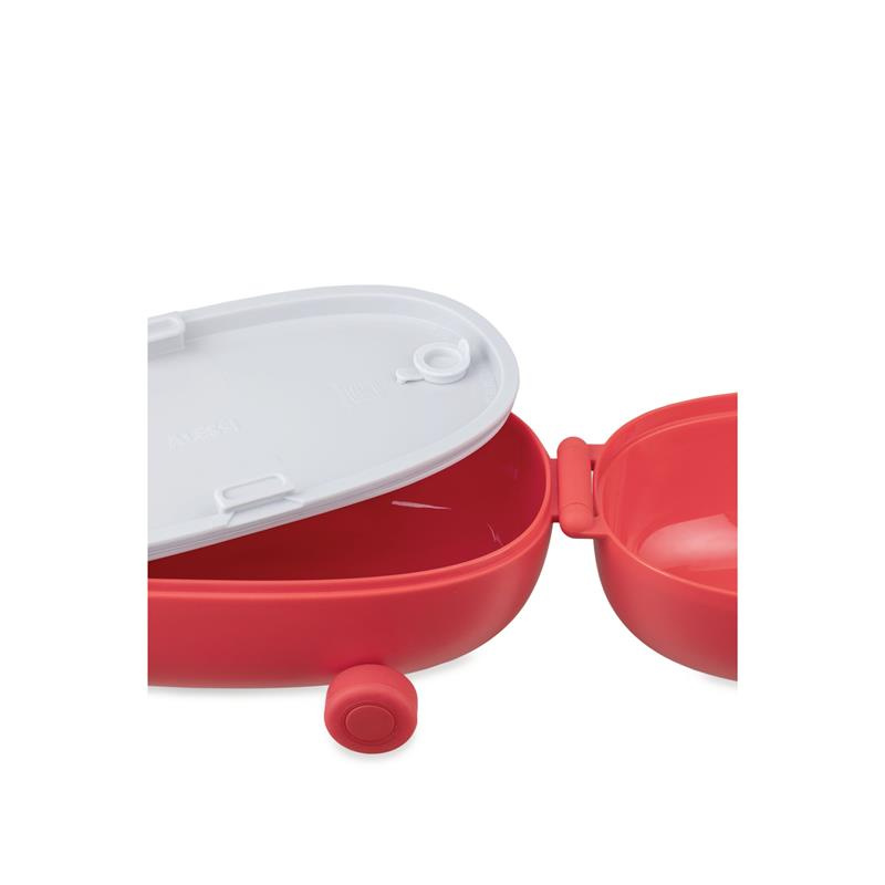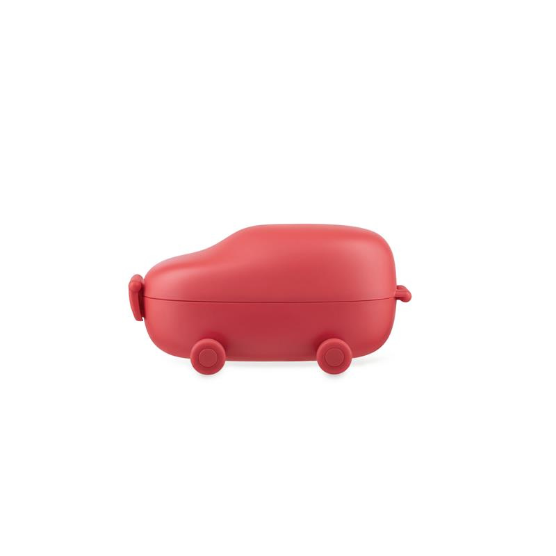Dwukomorowe pudełko na przekąski z termoplastycznej żywicy, czerwone. Sakura Adachi rozszerza kolorowy świat fantasy rodziny Food ? porter o nowe, zabawne pudełko na przekąski dla dzieci. Pojemnik na przekąskę w kształcie autka, dzięki czemu czas na przekąskę jest zawsze okazją do dobrej zabawy. Niezależnie od tego, czy są to poranne przerwy w szkole, czy po szkole przed oczekiwaniem na kolację, dzieci często są głodne i muszą spożywać szybkie przekąski między posiłkami. Z pudełkiem na przekąski Food ? Porter mogą przynieść z domu świeże i zdrowe jedzenie. Krojone owoce i warzywa, krakersy, kanapki, sery ... itp. można łatwo zapakować w pudełko z przekąskami do spożycia w szkole, na ławce w parku, w sali gimnastycznej, a nawet w samochodzie w drodze na zajęcia sportowe po lekcjach. Z pojemnikiem na lunch Food ? Porter, z wewnętrzną pokrywką, przekąski można podzielić na dwie przegródki.W przeciwnym razie, bez wewnętrznej pokrywy, w pojemniku można przechowywać dość obszerne produkty, takie jak babeczki, kanapki lub jogurt w kubku. Pudełko z przekąskami jest wyposażone w cztery małe kółka. Jego unikalna cecha sprawia, że pudełko z przekąskami mieści się gdzieś pomiędzy pojemnikiem na żywność a zabawką do zabawy. Przyjazna forma może jednocześnie zaprosić dzieci do jedzenia, zabawy i zabawy. Pudełko składa się z dwóch oddzielnych przegródek o pojemności odpowiednio 350 i 250 ml. Dwa pojemniki są oddzielone wyjmowanym elementem z odpowietrznikiem wyposażonym w małą silikonową zatyczkę odpowietrzającą, którą można wyjąć w celu podgrzania żywności w kuchence mikrofalowej.