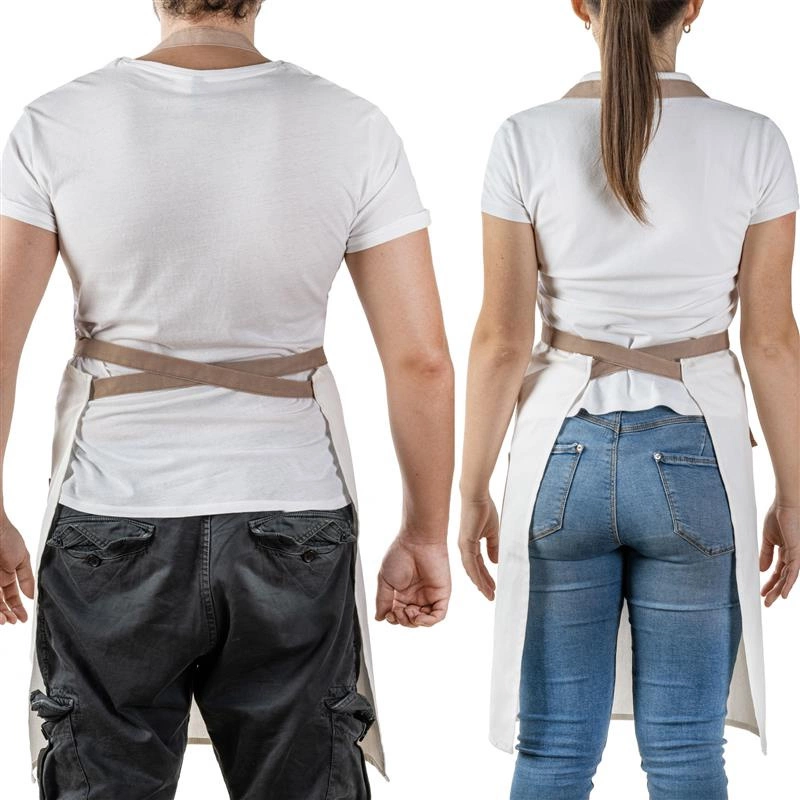 Fartuch z wyjątkowo długim wiązaniem w talii, który pasuje do każdego szefa kuchni. Co więcej, pasek na szyję można również regulować za pomocą 5 zatrzasków, aby zapewnić odpowiednią