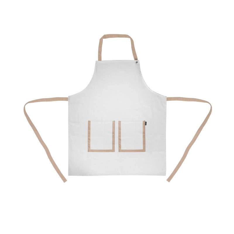 długość dla każdego. Fartuch ma dwie bardzo duże kieszenie z przodu, które pomieszczą różne przedmioty, od przyborów kuchennych, takich jak obieraczka do ziemniaków lub otwieracz do puszek, po przedmioty, które chcesz mieć zawsze przy sobie, takie jak smartfon, który będzie chroniony np. przed zachlapaniem. Dostępne są trzy wersje kolorystyczne: mleczna biel z piaskowymi wykończeniami, taupe i granat z szarymi wykończeniami.