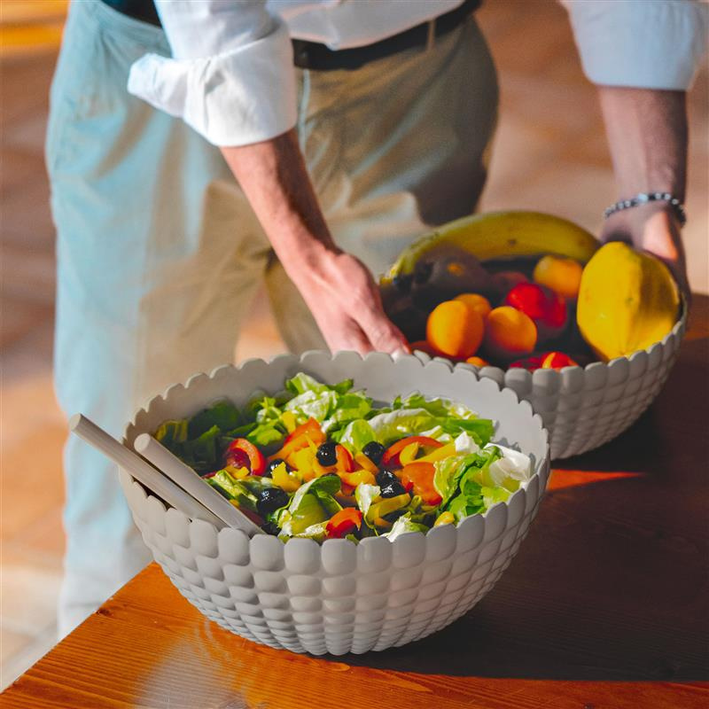 Misa wykonana z wysokiej jakości przezroczystego plastiku z błyszczącymi efektami kolorystycznymi, dzięki czemu idealnie nadaje się do posiłku na świeżym powietrzu, ale także dodaje wyrafinowanego akcentu najbardziej formalnym nakryciom stołowym. Wyprodukowane we Włoszech.