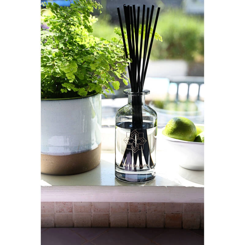 Dyfuzory zapachowe Max Benjamin są ręcznie produkowane w Hrabstwie Wicklow w Irlandii. Niezwykle aromatyczna mieszanka najwyższej jakości olejków zapachowych została zamknięta w pięknym porcelanowym pojemniku i zapakowana w eleganckie pudełko. Twój ulubiony zapach będzie uwalniał się przez okres nawet 4 miesięcy – siłę zapachu możesz dowolnie regulować ilością umieszczanych w pojemniku patyczków. Aby w pełni cieszyć się swoim ulubionym zapachem wystarczy od czas do czasu wyjąć patyczki z pojemnika i obrócić je góra-dół. Dyfuzor zapachowy Max Benjamin nie zawiera alkoholu, a każda mieszanka zapachów jest budowana w trosce o alergików, dlatego nasze produkty mają bardzo niski poziom alergenów. French Linen Water to zapach przypominający wieczory spędzone na werandzie w Prowansji, ten delikatny kwiatowy aromat zawiera nuty lawendy, słodkiej pomarańczy, petitgrain i cytrusów