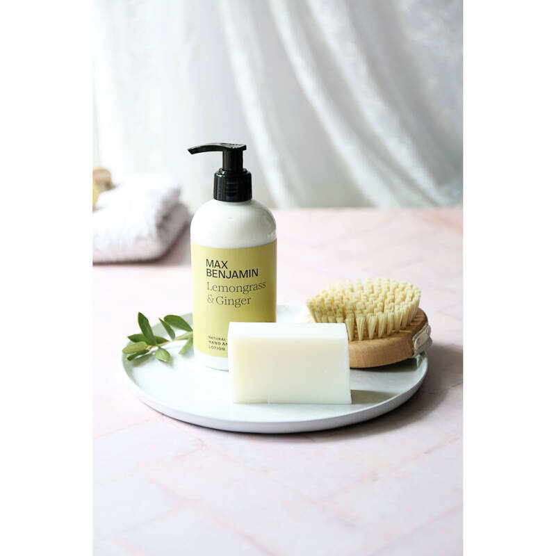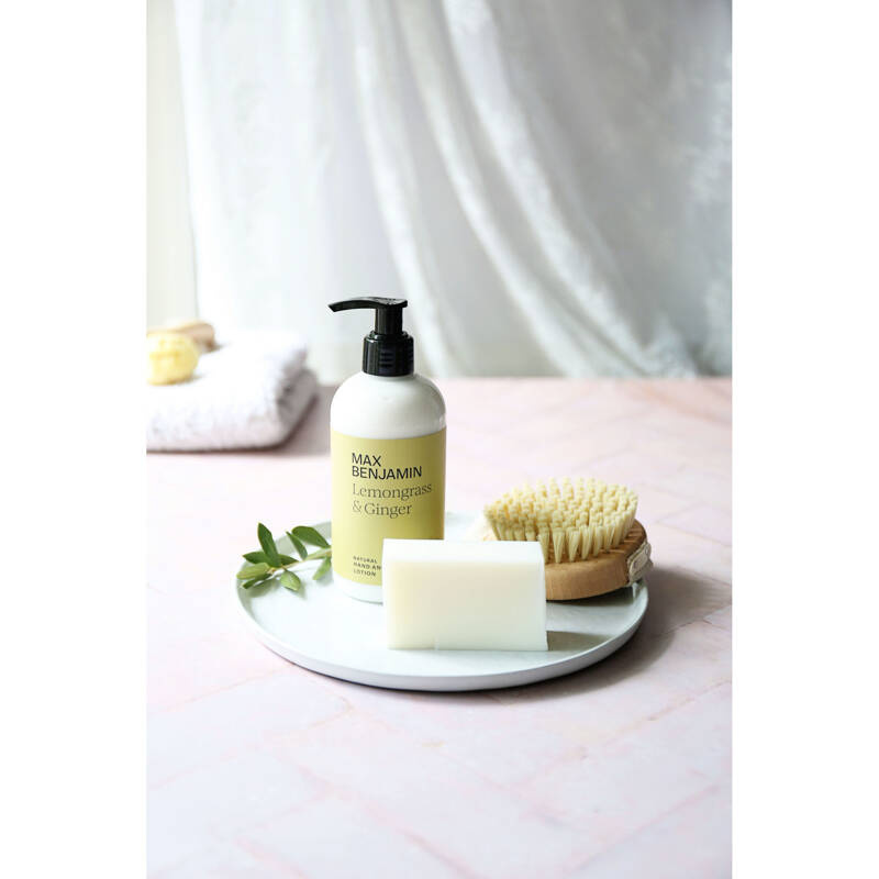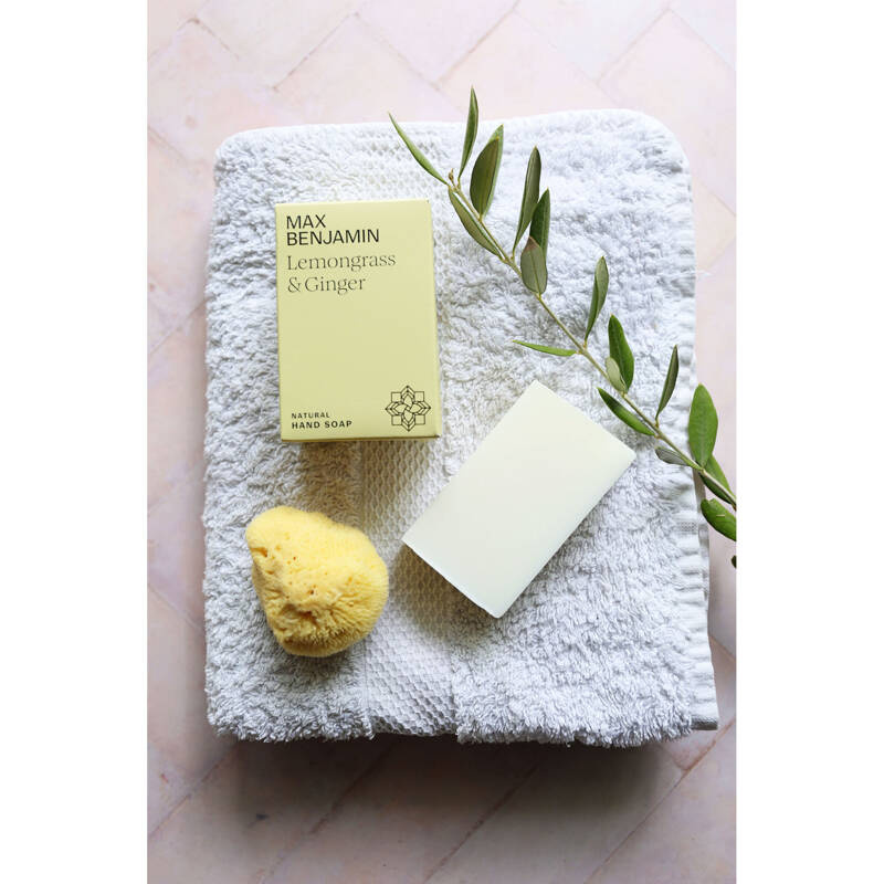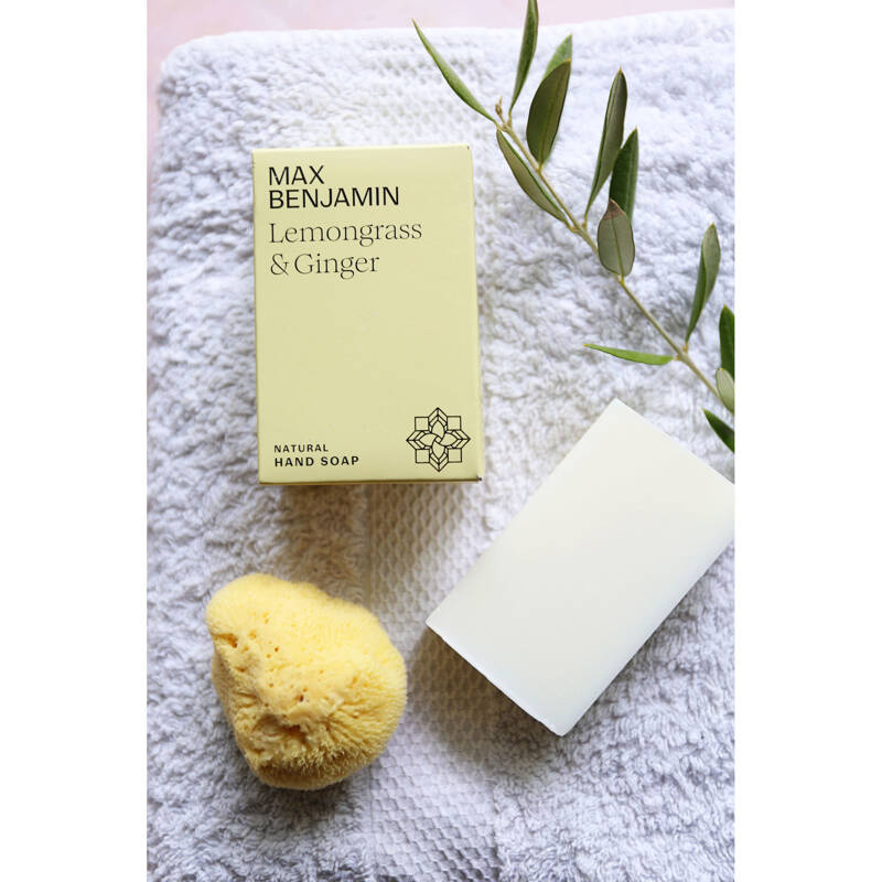 Luksusowe mydło Max Benjamin zostało potrójnie utwardzone, aby zawierało mniej wody a więcej mydła. Tak powstaje każda sztuka naszego trwałego mydła o bogatej i aromatycznej pianie Bazę naszego mydła tworzy najwyżej jakości oliwa oraz olej kokosowy – nasze mydła nie zawierają oleju palmowego. Zapach Lemongrass & Ginger to subtelne połączenie cytrusowych ziół i łagodnego, korzennego imbiru. Ciesz się tym oczyszczającym i podnoszącym na duchu aromatem