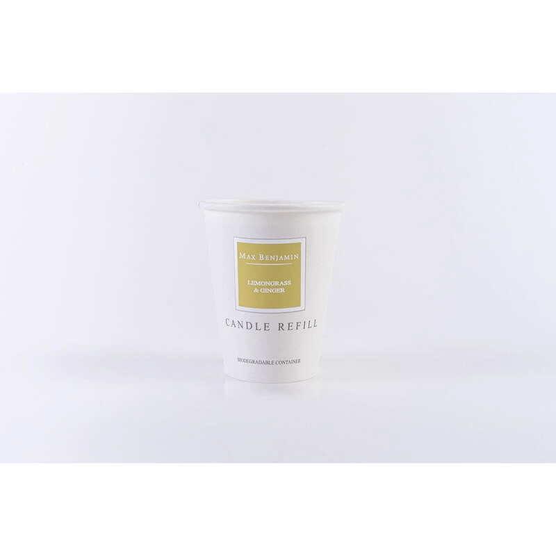 Wkłady do świec Max Benjamin (190g) powstały w trosce o naszą planetę, aby ograniczyć ilość odpadów. Nasze wkłady idealnie wpasują się wpusty porcelanowy pojemnik po świecy Max Benjamin, a Ty ponownie możesz cieszyć się swoim ulubionym zapachem lub spróbować czegoś nowego. Wkład wystarczy wyjąć z kartonowego opakowania i umieścić w pojemnuku Max Benjamin – karton nadaje się do recyklingu. Zapach Lemongrass & Ginger to subtelne połączenie cytrusowych ziół i łagodnego, korzennego imbiru. Ciesz się tym oczyszczającym i podnoszącym na duchu aromatem – od kuchni po łazienkę.