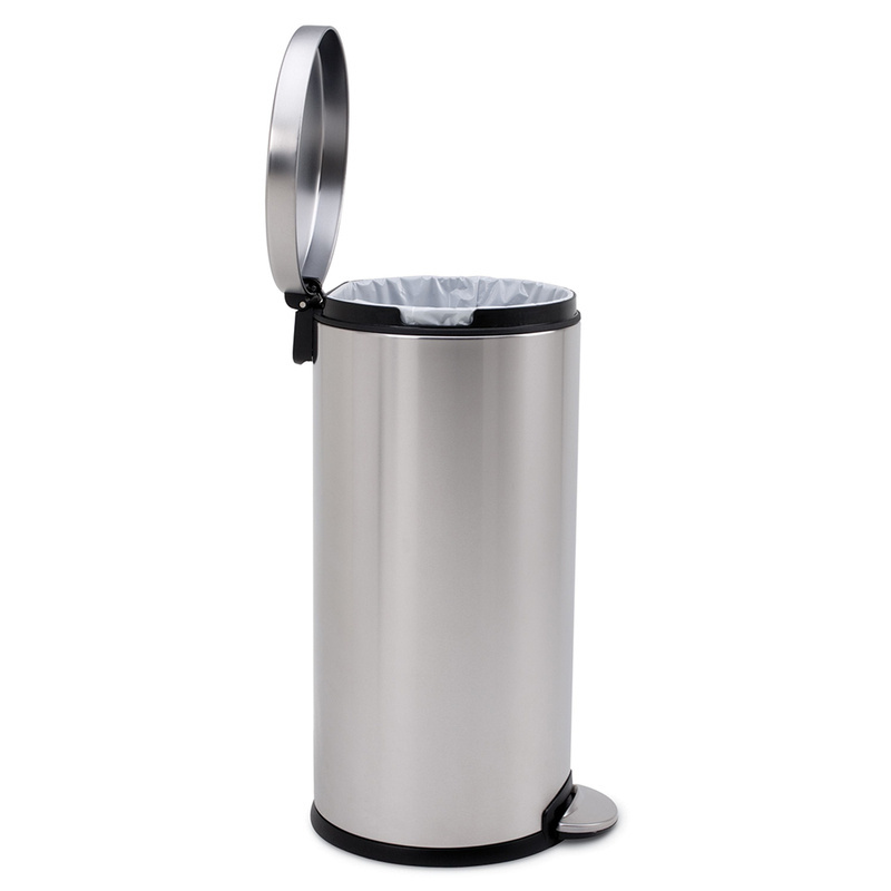 Klasyczny okrągły kosz na śmieci z pedałem Simplehuman to idealny wybór do każdego domu. Jego kultowy okrągły kształt pasuje do narożników, przy ścianie - niemal wszędzie. Mocny stalowy pedał został zaprojektowany z myślą o trwałości, a nasza opatentowana technologia pokrywy Shox zapewnia płynne i ciche zamykanie za każdym razem. Worki Simplehuman Code G idealnie pasują do tego kosza – nie zwijają się ani nie ślizgą, co zapewnia większą czystość. - mocny stalowy pedał: mocny stalowy pedał został zaprojektowany tak, aby wytrzymać ponad 150 000 kroków – to ponad 20 kroków dziennie przez 20 lat - cicha zamykająca pokrywa: patentowana technologia lid shox kontroluje ruch pokrywy, zapewniając powolne i ciche zamykanie - czystsza stal nierdzewna: niewidoczna powłoka z jonami srebra jest odporna na odciski palców i rozprzestrzenianie się zarazków, nie matowiąc naturalnego połysku tali - zawias o wąskim profilu: Węższy niż tradycyjne zawiasy – pozwala umieścić kosz bliżej ściany - pokrywa pozostaje otwarta: Pokrywa pozostaje otwarta tak długo, jak chcesz – idealna do dłuższych prac - podstawa antypoślizgowa: podstawa antypoślizgowa wyposażona jest w gumowe podkładki, które są delikatne dla podłogi i utrzymują pojemnik stabilnie