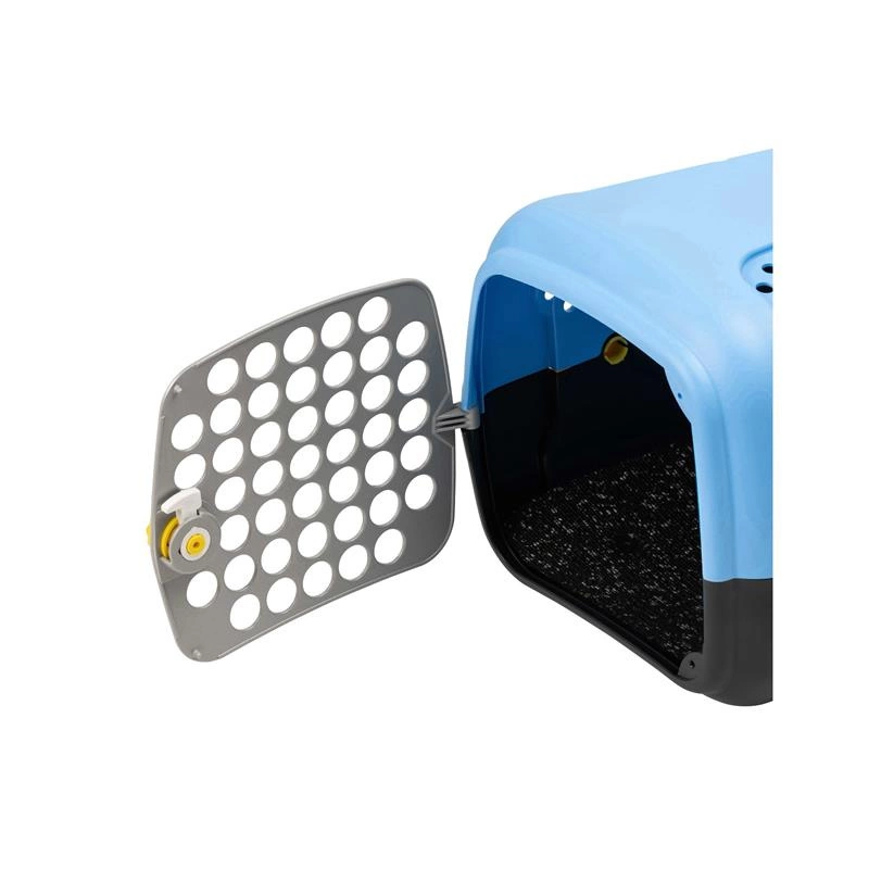 Transporter dla zwierząt, odpowiedni dla małych psów i kotów. Korpus wykonany jest w 100% z polipropylenu, z miękkim gumowym uchwytem. Można go szybko przymocować do pasa bezpieczeństwa, dzięki specjalnym otworom. Nadaje się do transportu kabinowego linii lotniczych. Maksymalne obciążenie: 7 kg