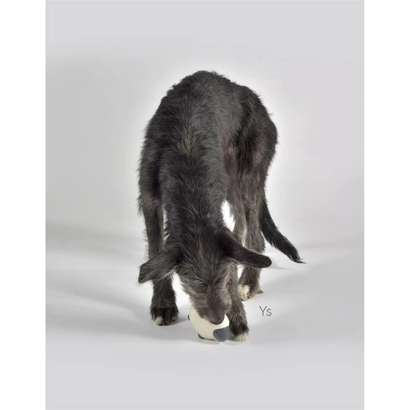 Zabawka lateksowa w kształcie owcy. Można myć wodą z mydłem. Z gwizdkiem przywołującym psa. Rozmiar odpowiedni dla małych i średnich psów.