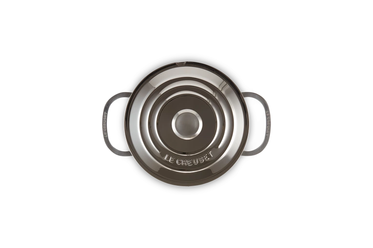Garnek 3-ply Plus stal nierdzewna 2,8 l Le Creuset z klasyczna pokrywką nawiązująca kształtem do pokryw naczyń żeliwnych.
