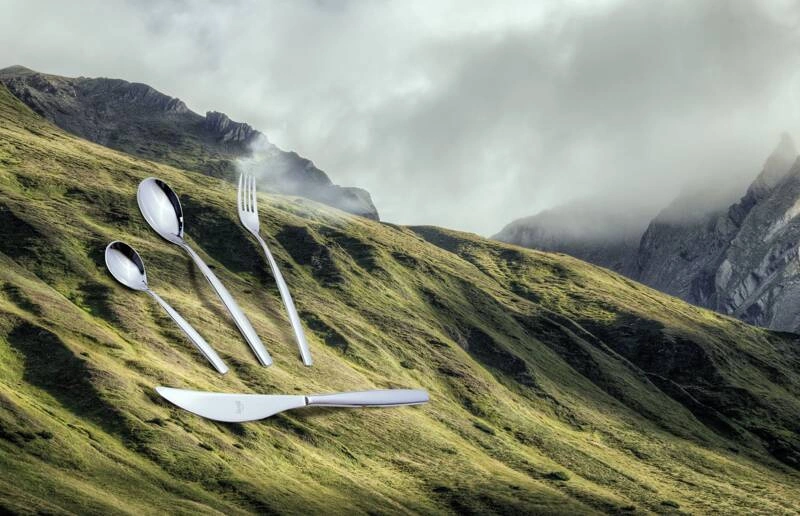 - kolekcja Stiria to projekt studia Tecnico Mepra. Zęby widelców zostały obrobione wewnątrz, a noże mają ząbki.