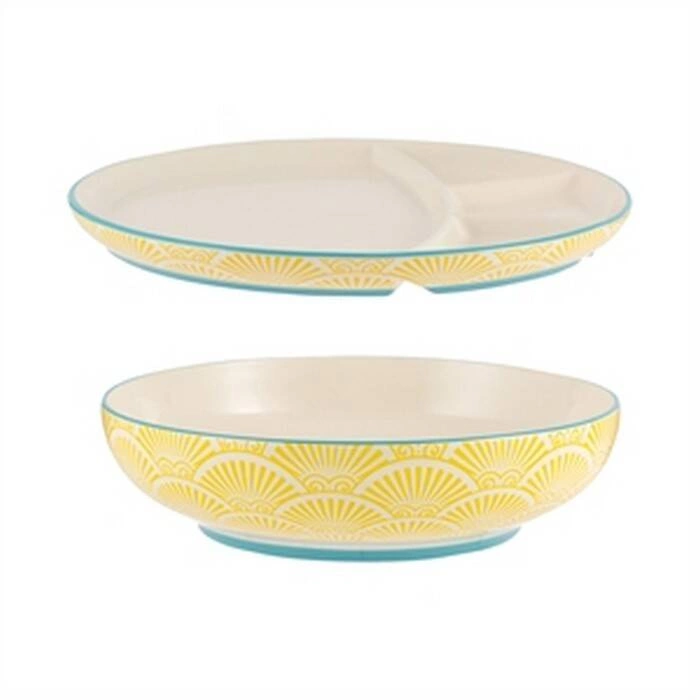 Miska + talerz World Foods Typhoon: - naczynia są wykonane z kamionki, - talerz jest podzielony na kilka sekcji, - zestaw świetny jako prezent, - przeznaczony do mycia ręcznego, - pojemność miski 0,85 l.