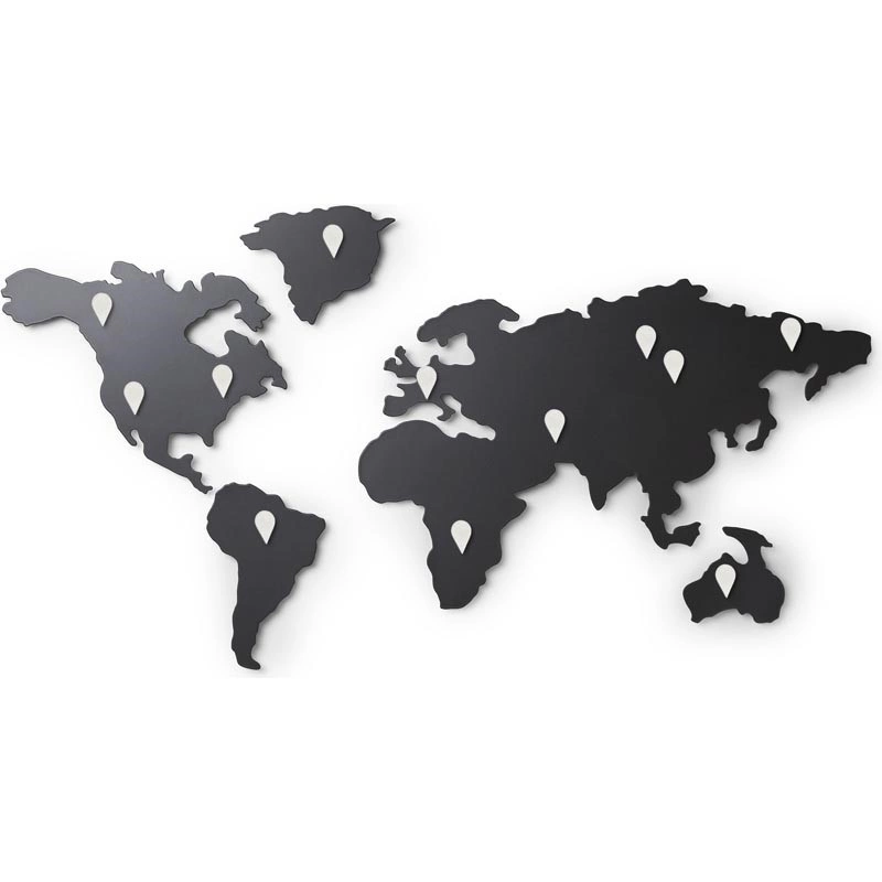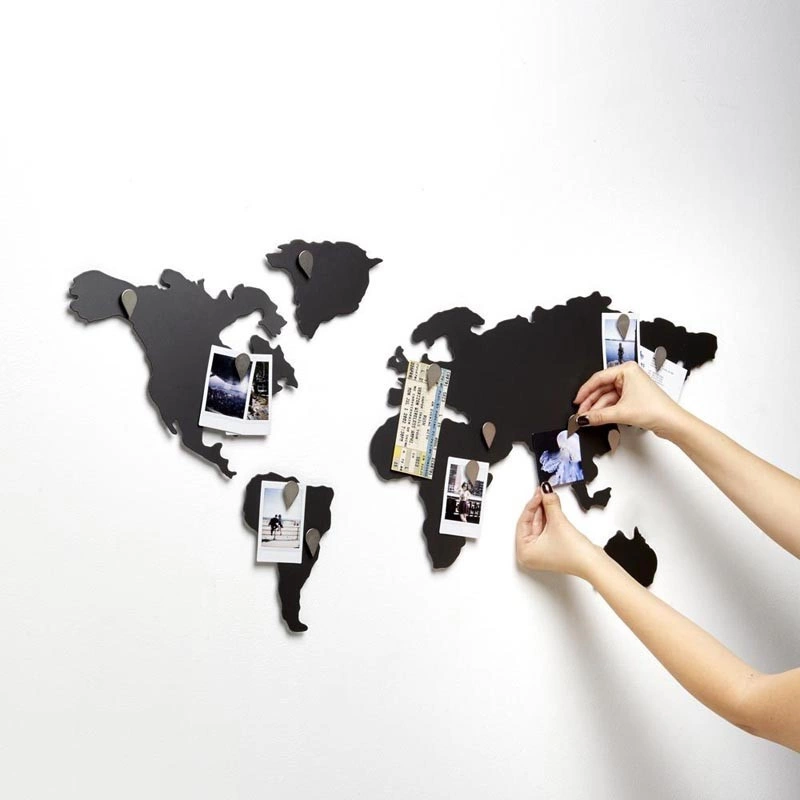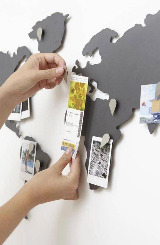- dekoracja ścienna w kształcie kontynentów ziemskich do przyczepienia widokówek lub zdjęć,