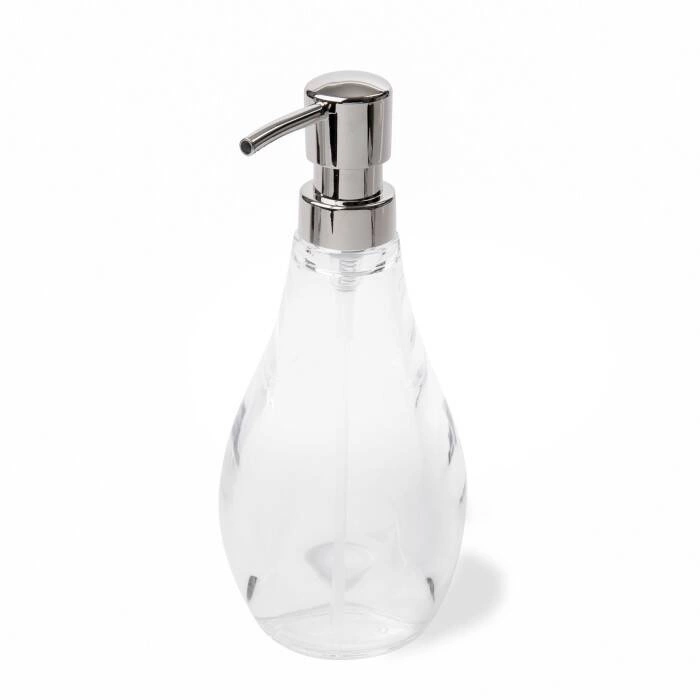 - dozownik do mydła mieszczący 0,28 l mydła, - wykonany z przejrzystego, wytrzymałego akrylu, pompka jest metalowa, - przeznaczony do mycia ręcznego. Wymiary: 8 x 20 cm (śr. x wys.) Pojemność: 0,28 l Materiał: akryl, metal Kolor: transparentny Kolekcja: Droplet