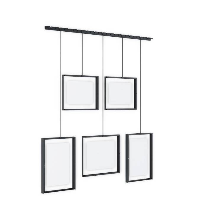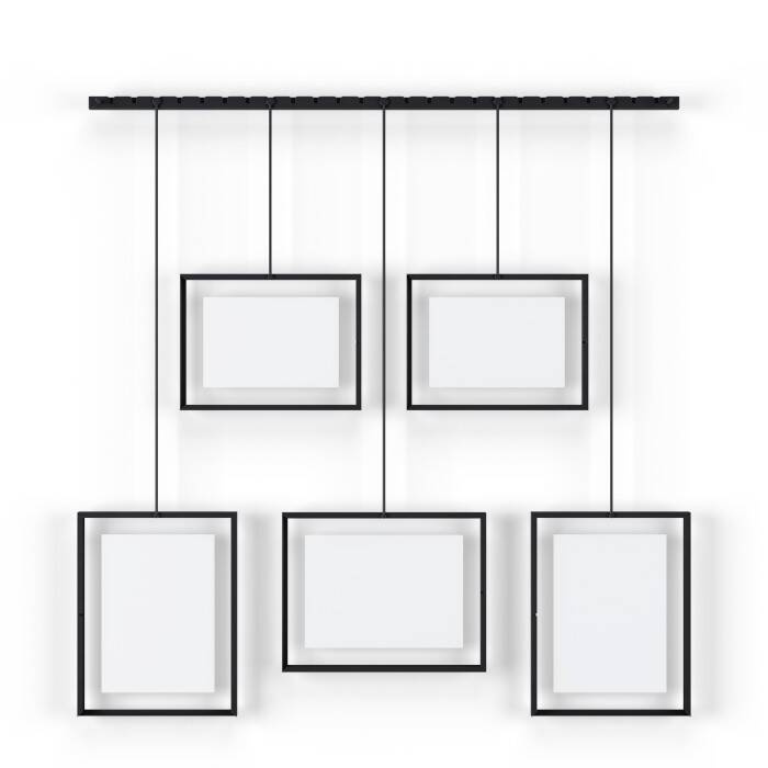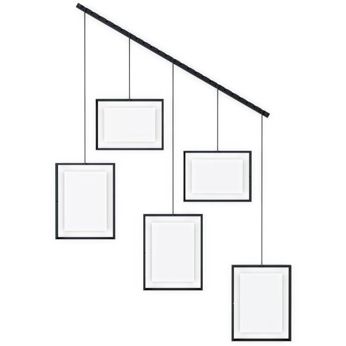- zestaw 5 wiszących ramek na zdjęcia: 2 szt. 10 x 15 cm i 3 szt. 13 x 18 cm na metalowej listwie,
