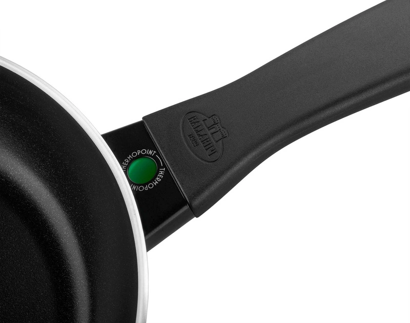 Wysokiej jakości uchwyt imponuje swoimi właściwościami antypoślizgowymi: ergonomiczny kształt, zaprojektowany przez gwiazdorskich projektantów Matteo Thuna i Antonio Rodrigueza, doskonale leży w dłoni. Wskaźnik THERMOPOINT umieszczony w uchwycie zmienia kolor w zależności od temperatury, pomagając Ci znaleźć idealną temperaturę gotowania. Innowacyjna technologia Radiant Induction oznacza, że dno patelni rozprowadza ciepło szybko i równomiernie, zapewniając doskonale ugotowane potrawy. Patelnia z powłoką nieprzywierającą może być używana na wszystkich rodzajach kuchenek, a daje szczególnie dobre wyniki na kuchenkach indukcyjnych.