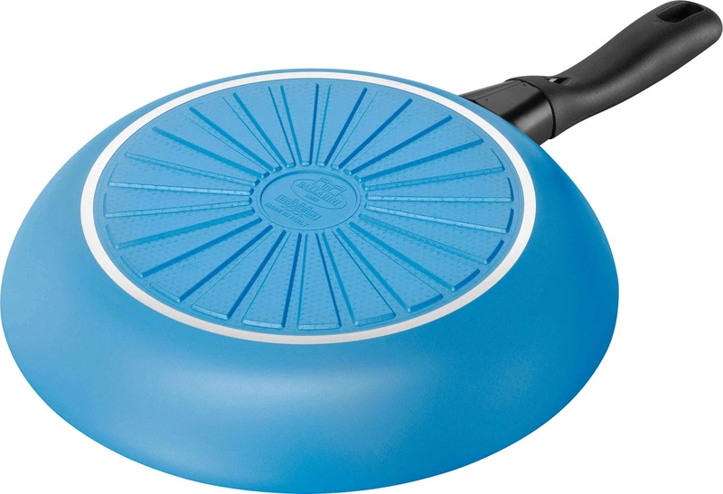 • Nowoczesna konstrukcja patelni w jasnoniebieskim kolorze
